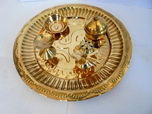 Artcollectibles India Hindu Puja Ottone Religioso Thali Havan Om Piatto di Preghiera Bruciatore di Incenso Art