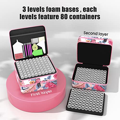 【Tieni Tutto In Una Custodia】 240 bottiglie sono dotate di una base in schiuma per organizzare perfettamente tutte le tue esercitazioni. La parte superiore della vite può proteggere le punte da fuoriuscita durante lo spostamento. Una tasca a rete abbastanza grande per riporre gli diamond painting accessori.
