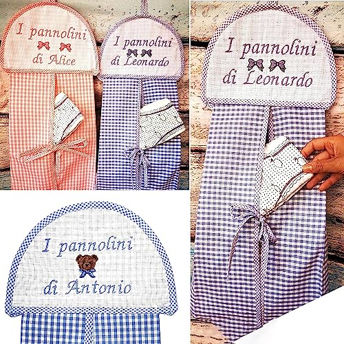 ARTEA DI ALICE Porta Pannolini Personalizzato Asilo Borsa da Appendere Accessori e Salviette Neonato, Portaoggetti/Pochette Da Viaggio Portatile Regalo Nascita Neonato (Rosa)