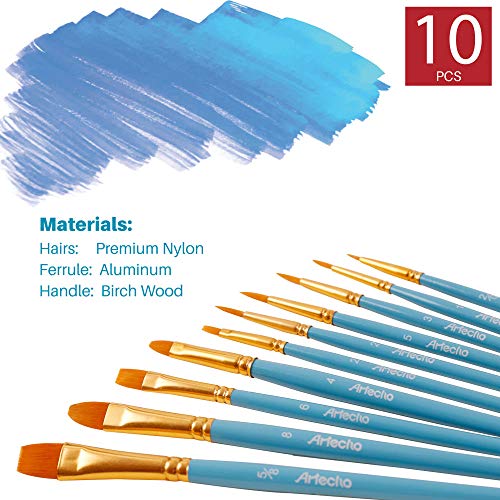 Artecho Set di Pennelli da Pittura, 10 Pezzi Pennelli per Dipingere, Set Pennelli per Acquerelli, Olio, Acrilico, per Artisti, Adulti, Principianti e Amanti della Pittura.