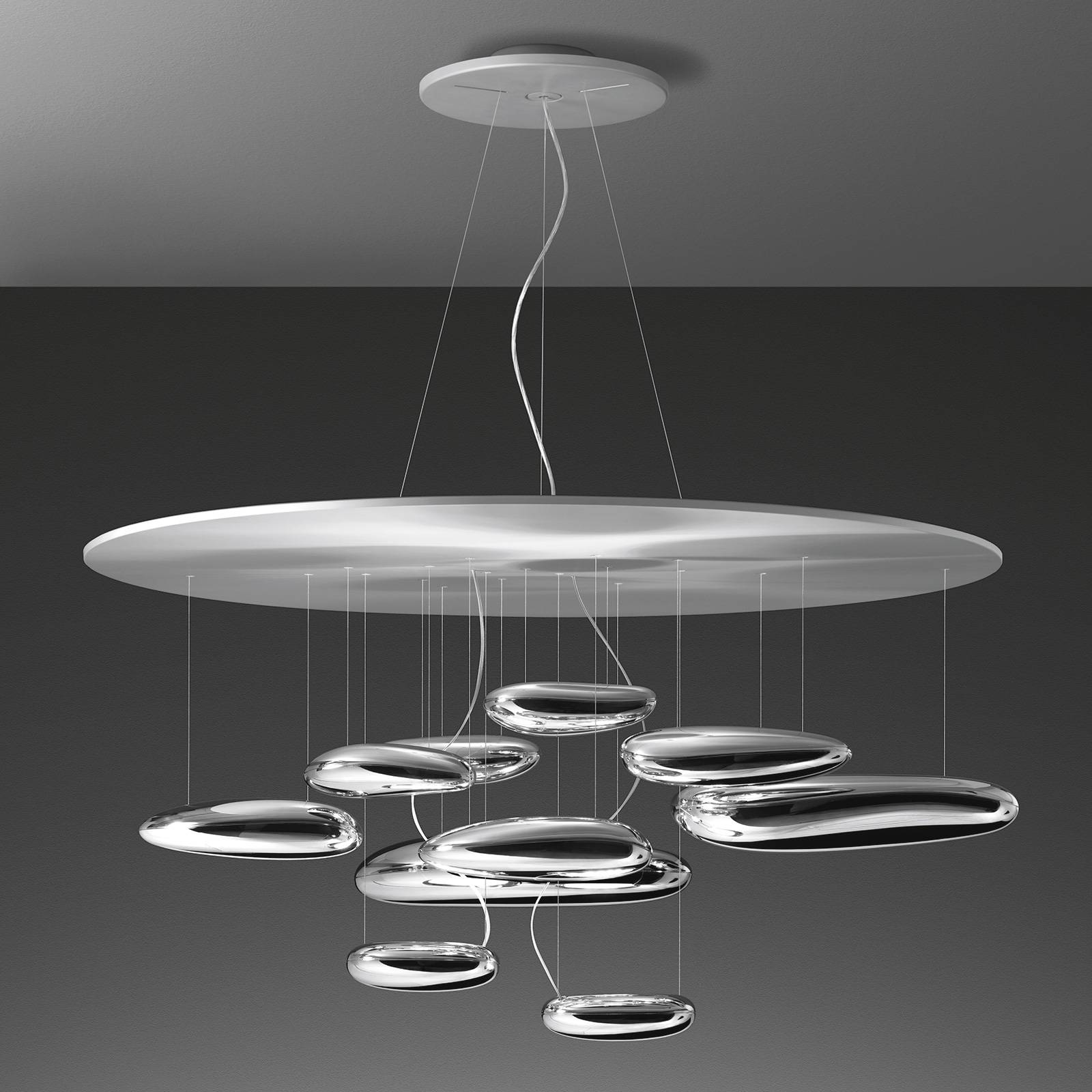 Lampada LED a sospensione Mercury di aspetto organico Un corpo illuminante che si potrebbe definire celestiale: è la lampada LED a sospensione Mercury ideata da Ross Lovegrove, uno dei designer più influenti dei nostri giorni. I suoi progetti si ispirano sempre alla natura e presentano un aspetto organico, che si tratti di biciclette, auto solari, orologi o lampade. Lo testimonia in pieno questa favolosa lampada a sospensione. La lampada è formata da un disco di alluminio pressofuso che riflette la luce dei LED contenuti negli elementi sottostanti, realizzati in termoplastica con finitura cromata lucida. Si viene così a formare un'illuminazione indiretta che si estende a tutto l'ambiente con un effetto morbido. Mercury possiede una comoda funzione switch-dim, vale a dire che l'intensità di luce si regola a tre livelli con il normale interruttore a parete. La lampada LED a sospensione Mercury viene prodotta da Artemide, azienda fondata nel 1960 da Ernesto Gismondi e oggi di sede a Pregnana, nei pressi di Milano. Artemide è conosciuta in tutto il mondo per le sue lampade d'altissima qualità, spesso diventate autentiche icone del design.