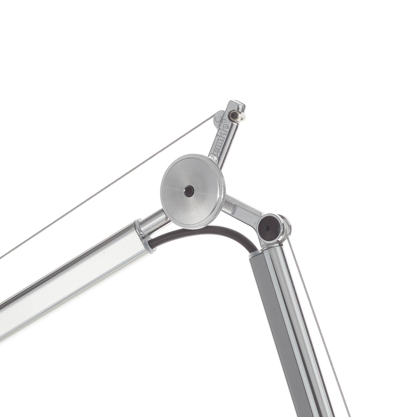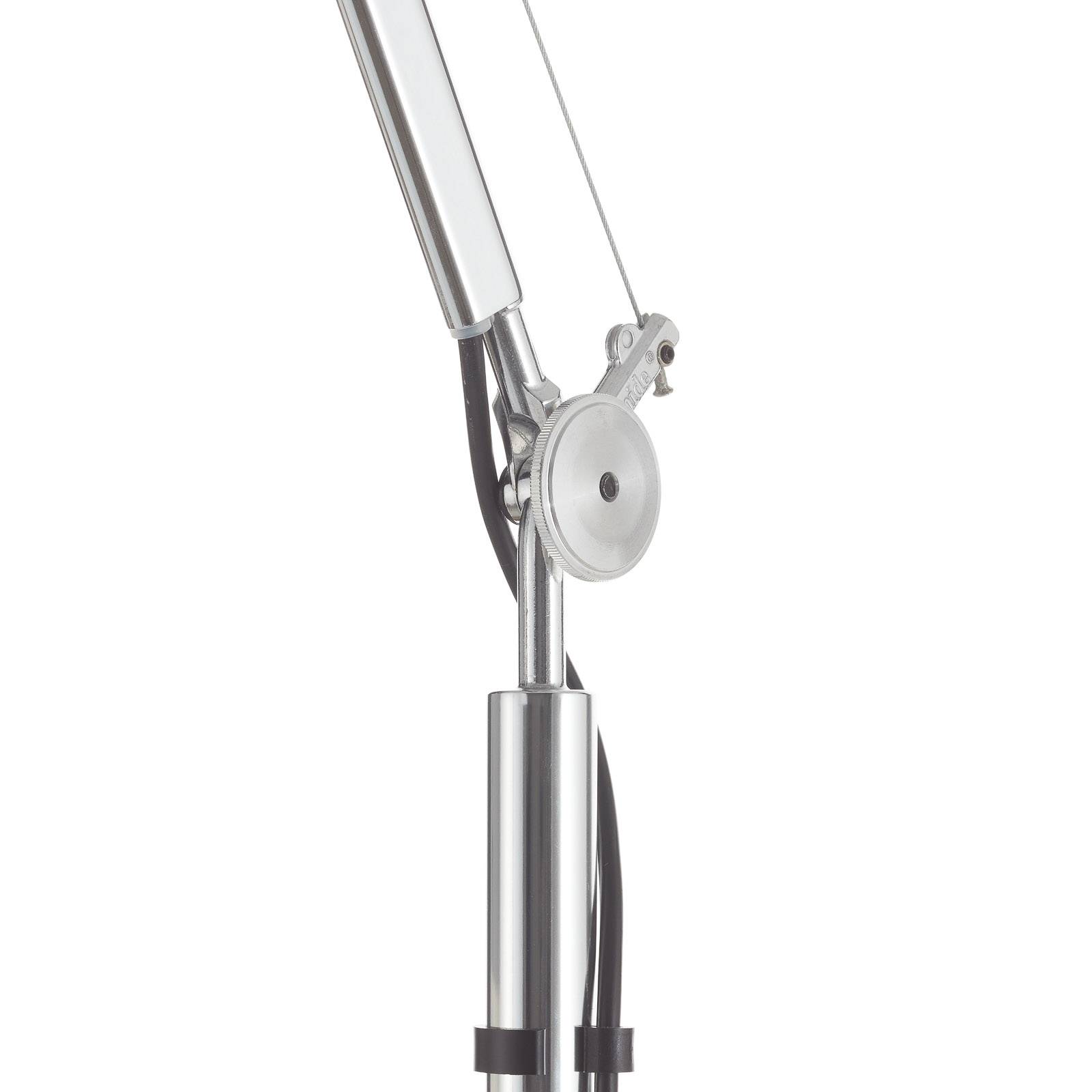 Sottile e flessibile - piantana Tolomeo Mega La prima cosa che colpisce è il suo design filigranato. Lo stelo della piantana Tolomeo Mega appare molto sottile, quasi non si nota. L'attenzione va subito sullo schermo a tronco di cono. Anche se il tocco di genio di questa lampada è tutto nello stelo. Questo infatti è costruito con snodi flessibili che permettono di variarne l'altezza o la sporgenza. La lampada si allunga fino a 1,86 m e si alza addirittura fino a 3,27 m. Un innovativo sistema di molle garantisce la necessaria stabilità e fa in modo che la posizione rimanga quella prescelta. Altrettanto flessibile è lo schermo, che si può ruotare nel modo preferito. Per portarlo nell'angolatura che occorre ci si serve di un'asta metallica inserita nello schermo. Vantaggiosa anche la regolazione dell'intensità: la piantana possiede un comodo dimmer a pedale con pulsante on/off separato. Design e relativi meccanismi sono firmati dai due architet