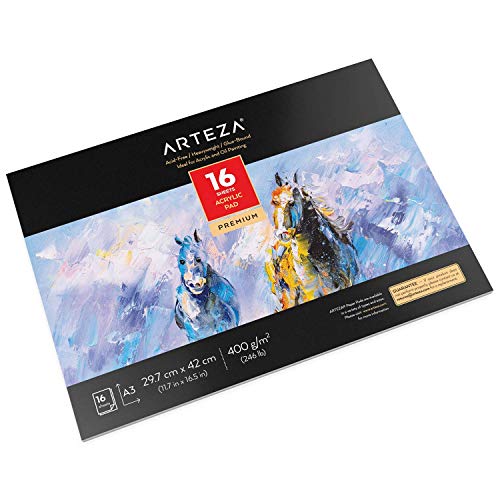ARTEZA Blocco da disegno per pittura acrilica | Formato A3 | 16 fogli | Carta da pittura spessa (400 g)| Quaderno per dipingere con acrilico e a olio