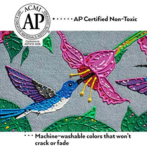 ARTEZA Colori per Tessuti Permanenti 3D, Set di 30 Tubetti da 29 ml, Colori Fluorescenti, Vivaci, Metallizzati e Glitter per Tessuti, per Abbigliamento, Accessori, Ceramica e Vetro