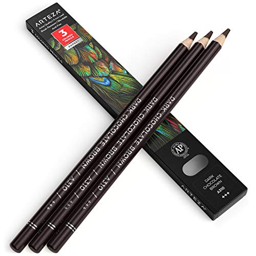 Arteza Matite Colorate Professionali, Set da 3 Colori a Matita (A118 Marrone Cioccolato Fondente), Pastelli Colorati in Astuccio di Cartoncino per Adulti e Bambini, per Colorare, Disegnare e Sfumare