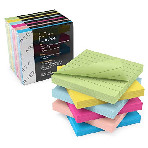 Arteza Sticky Notes, 7,6x7,6 cm, Confezione Risparmio da 48 Blocchetti Adesivi Colorati, 24 Blocchi a Righe e 24 Vuoti, 6 Colori Assortiti, 100 Foglietti Adesivi per Blocco, Per Ufficio, Casa, Scuola