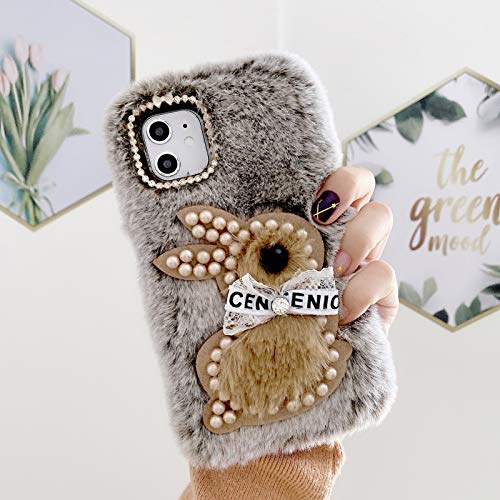 Materiale di alta qualità:Realizzato in peluche di pelliccia di coniglio artificiale e strato interno in silicone morbido flessibile,super morbido e leggero,protegge il tuo telefono da graffi,urti,sporco,polvere.Il peluche è super morbido,soffice,liscio,ti offre una presa comoda e può riscaldarti le mani in inverno.