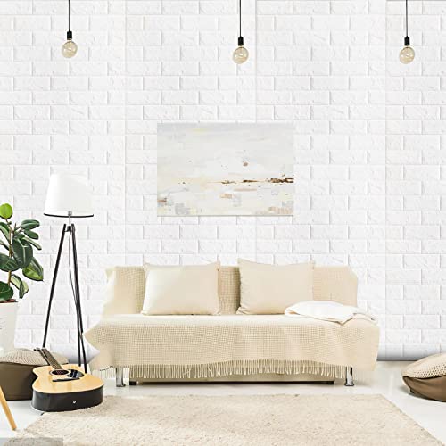 Arthome 10pezzi Pannelli da Parete Autoadesiva,Carta da Parati Effetto Pietra 3D,Impermeabile Carta da Parati in Schiuma per Decorazione da Parete (Bianco, 3,6 ㎡)