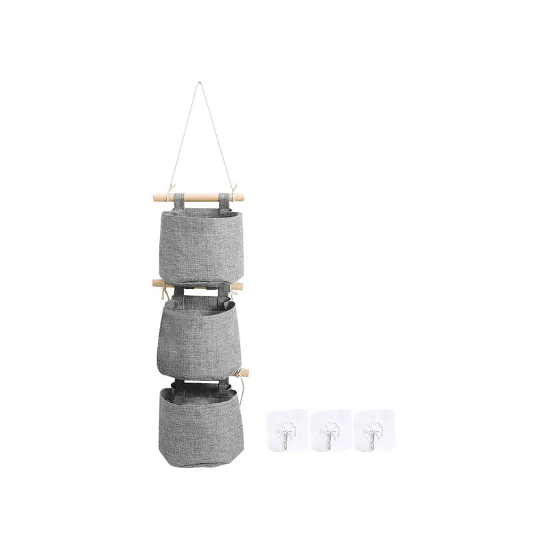 Descrizione:Materiale: gli organizzatori dell'armadio a parete sono realizzati in tessuto di lino di cotone, quindi è rigido e tiene bene la forma mentre si appende al muro, traspirante, resistente, lavabile e impermeabile.DESIGN carino: pieghevole e staccabile, tre/cinque tasche possono essere sospese separatamente o insieme. Le tasche portaoggetti sono molto carine e sono eleganti in una stanza, possono decorare la tua stanza.Utilizzo: può riporre tutti i telecomandi, occhiali, gioielli, caricabatterie, posta, banconote, chiavi, biancheria intima, calzini, ecc. ottimo per creare spazio di archiviazione aggiuntivo, mantenere la tua stanza in ordine e organizzato.Scena: questo organizzatore da parete multiuso può essere appeso in camera da letto, bagno, cucina, ufficio, adatto anche per appendere al guardaroba o al binario dei vestiti.Facile da appendere: dotato di barra di legno e corda e ganci, facile da usare e risparmiare spazio.Specifica:Materiale: Cotone E LinoColore: grigio