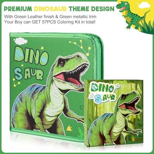 Un set di 56 articoli scintillanti per bambini a forma di dinosauro completo di scatola, pennarelli profumati, penne colorate, matite e pastelli, un grande regalo per le ragazze