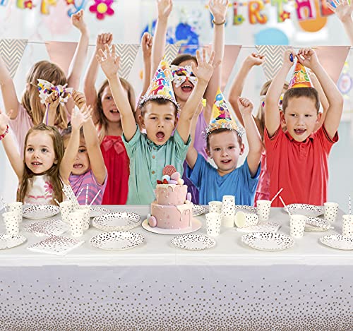 Articoli da tavola usa e getta a pois dorati, per cena/dessert, tazze, tovaglioli, cannucce, striscione, tovaglia per feste di compleanno, matrimoni, doccia nuziale - Serve 25 pezzi (bianco)