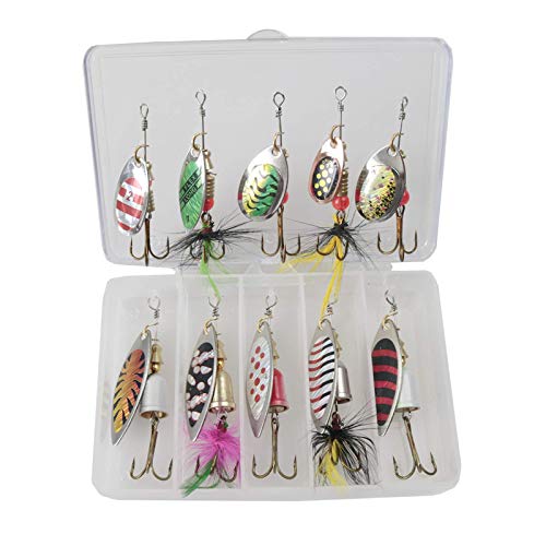 Artificial baitSet Esche da Pesca,Bogoro 10 Pezzi Artificiali Pesca Esche Cucchiaini Pesca Esche Artificiali Spinning Trota, per Pesca in Acqua Salata, Trota, Pesce Persico, Esche Luccio