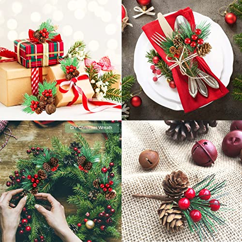 【LA CONFEZIONE COMPRENDE】 20 rami di pino natalizio, ciascuno con 5 bacche rosse e 2 pigne naturali, sufficienti per soddisfare le tue esigenze di artigianato e decorazioni natalizie.