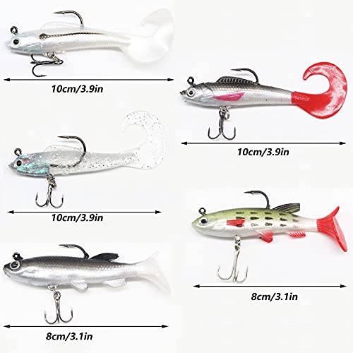 Esca artificiale galleggiante con amo Esche da pesca 3D miste Set di esche da pesca morbide per Acqua dolce acqua salata trota pesce persico lucioperca luccio salmone molti altri pesci predatori 5 pcs