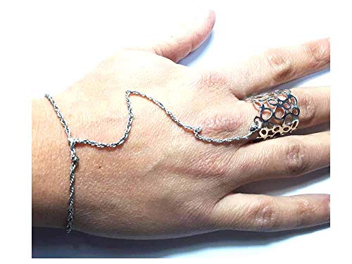 Artigianale 1 BACIAMANO Bracciale-Anello FILIGRANA, Regolabile,Bagno del Metallo a Scelta Oro Argento Bronzo etc Danza del Ventre Bijoux Alta BIGGIOTTERIA Made in Italy in Omaggio Portachiavi GEP