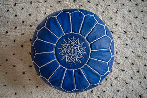 Pouf Artigianale in Vera Pelle - Fatto A Mano - Venduto Imbottito - Cuscini da Pavimento, Ottomano (Cielo Blu)