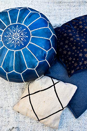 FATTO A MANO: il pouf è realizzato a mano in vera pelle di alta qualità, da una cooperativa di artigiani. I singoli pezzi di pelle vengono tinti, cuciti insieme e poi decorati con complesse cuciture a mano. Il pouf viene esposto al sole per ottenere un bel colore abbronzato, oppure viene tinto a mano in base a una tavolozza di colori personalizzata utilizzando materiali naturali. Sono realizzati interamente a mano dall'inizio alla fine, con le stesse tecniche tradizionali che durano da decenni.