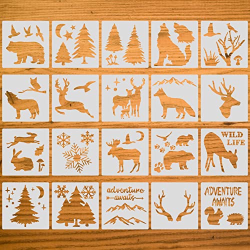 Tema Animali della Foresta: Gli stencil riutilizzabili in plastica combina piante della foresta, alci, orsi e altri elementi animali, per creare le vostre personali opere d'arte straordinarie.