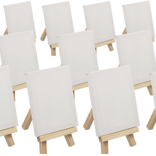 Artina Set da 100 cavalletti Mini da Pittura/segnaposto/bomboniera in Legno 6,5x11,5cm - Tela 7x9cm 100% Cotone Inclusa