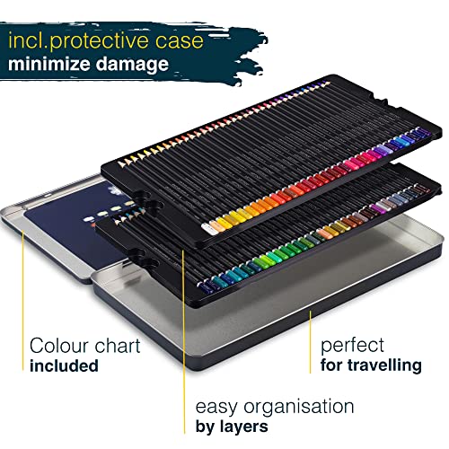 : Il set di matite viene fornito con una scatola di metallo in modo da avere sempre con sé uno spazio per riporre le stesse. Che le portiate da amici, al lavoro o a scuola: tutte le matite colorate sono al sicuro!