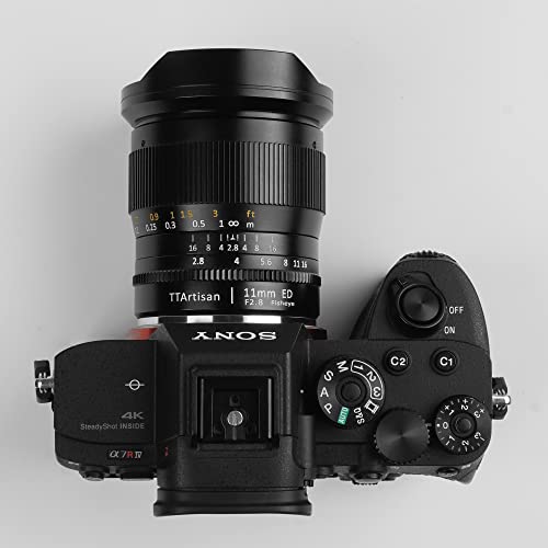 TT Artisan Fisheye - Obiettivo 11 mm f 2.8, attacco Sony E Mount ultra grandangolare per formato full frame in alloggiamento in alluminio, angolo di visione 180 gradi, Nero