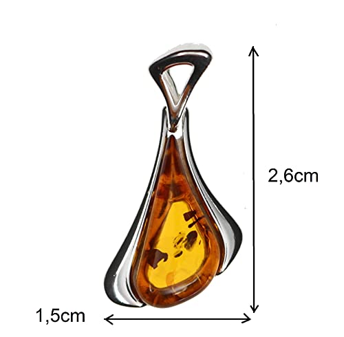 Ciondolo lunghezza 2,6 cm, larghezza 1,5 cm, in argento sterling 925/000 rodiato con ambra baltica