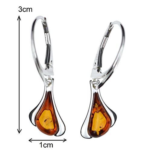 Orecchini pendenti lunghezza 3 cm, larghezza 1 cm, in argento sterling 925/000 rodiato con ambra baltica