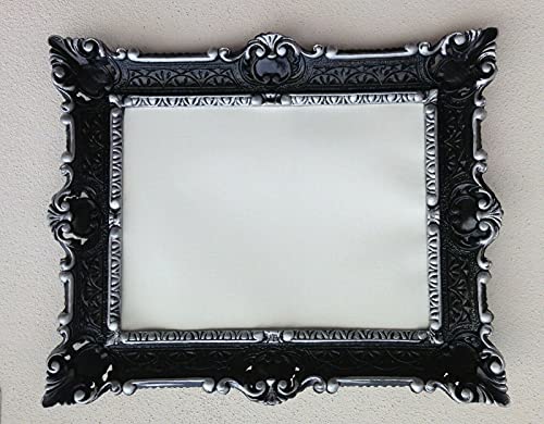 Artissimo Cornice portafoto barocca nera e argento con vetro protettivo, 56 x 46 cm, cornice antica, 3049