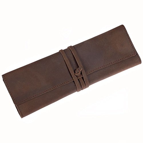 Artist - Astuccio portapenne, in pelle marrone, senza contenuto per 5 penne e un righello con scomparto per appunti