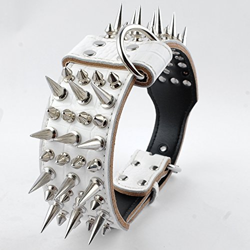 PET ARTIST 5,0 cm larghezza Sharp Spiked collare in pelle Cool per cani di taglia grande XL protezione anti-mordere Pitbull Bulldog Doberman bianco