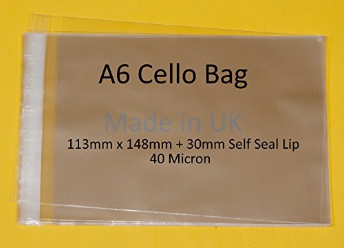 A6 - artista di cellophane display Bags self Seal - 113 mm x 148 mm + 30 mm flap - 40 micron