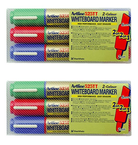Artline 525TT valore confezione da 6 pennarelli per lavagna magnetica Twin Tip & colore ad alte prestazioni 2 mm Bullet & 5 mm scalpello taglie