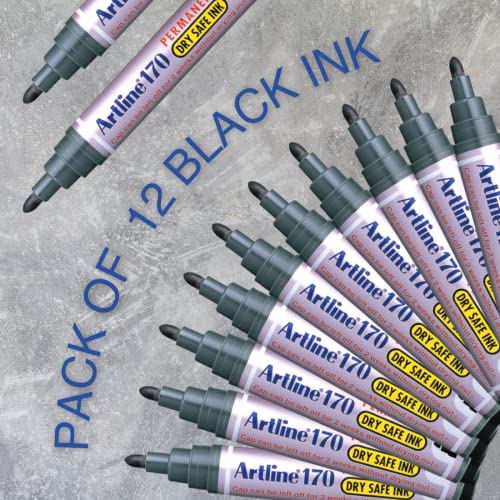 Artline 170 2 mm Dry safe pennarello permanente a punta fine, colore nero, confezione da 12 pezzi