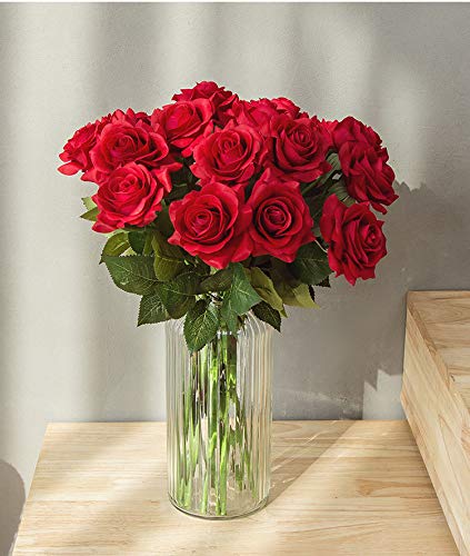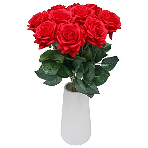 U'Artlines Rosa Artificiali Rosse,10 Pezzi Fiori Artificiali Rose per Bouquet da Sposa da Sposa Rose Finte per Bomboniere(Rosso)