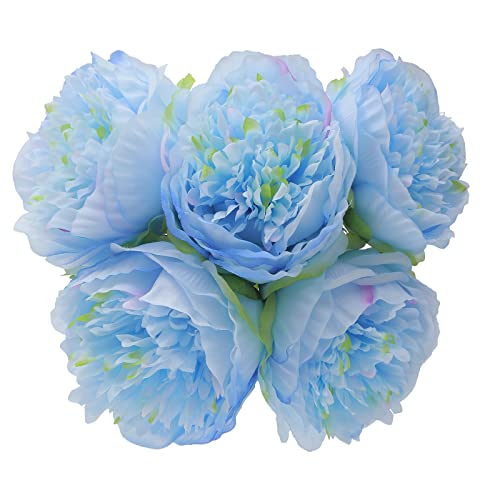 U'Artlines Fiori artificiali vintage peonia, 1 confezione di fiori di seta bouquet 5 teste peonie fiori finti per decorazioni per la casa di nozze (blu)