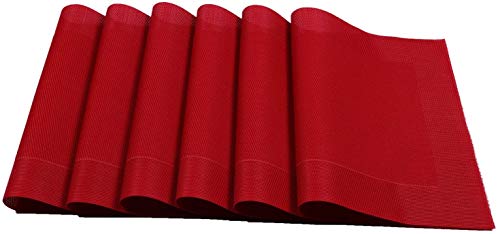 U'Artlines Set di 6 tovagliette woven vinyl PVC resistente al calore e lavabili per il tavolo da pranzo della cucina(6,rosso)