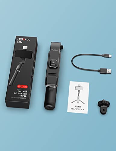 ARTOFUL Bastone Selfie Treppiede con Luci Treppiede Smartphone con Telecomando Wireless Selfie Stick Rotazione a 360° Treppiedi Stabile per 4.7-6.7 Pollici iPhone/Huawei/Gopro/Small Camera