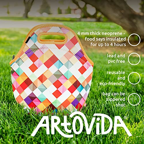 Neoprene Lunch Bag by ART OF LUNCH - Large [12 x 12 x 6.5] Gourmet Lunch Tote - Insulated Waterproof Lunch Bags For Men, Women, Adults, Kids, Girls - A Partnership with Artists Around the World - Design by Danny Ivan (Portugal) - Pass This On