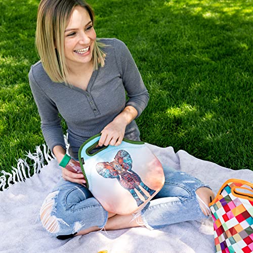 Neoprene Lunch Bag by ART OF LUNCH - Large [12 x 12 x 6.5] Gourmet Insulated Lunch Tote - A Partnership with Artists Around the World - Design by Monika Strigel (Germany) - Elephant
