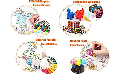 ARTOYS Set da Pittura per Bambini,123 Pezzi, Astuccio in Legno,con pastelli a Cera,acquerelli, Colori acrilici, pastelli ad Olio,Confezione Regalo Creativa per Principianti Ragazze Ragazzi 6-12
