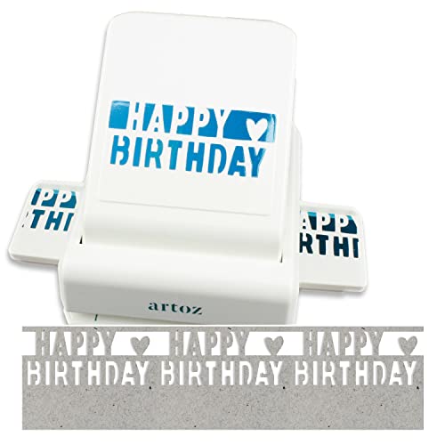 ARTOZ Perforatrice con scritta "Happy Birthday" - 6,4 cm - punzonatrice per carta, perforatrice per compleanno, biglietti di invito, biglietti di auguri, menù e decorazioni, adatta fino a 220 g/m²