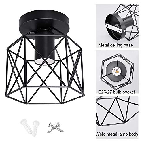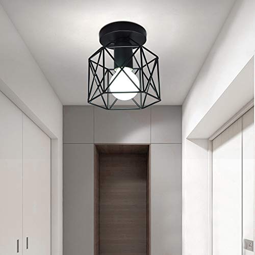 Artpad Vintage Loft Gabbia di ferro nero Lampada da soffitto a led 5W Lampada da soffitto a LED nordica bianca per cucina Camera da letto Balcone Corridoio Bar E27 Plafoniera geometrica