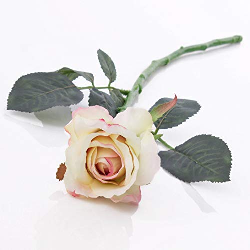 Artplants.de Rosa Artificiale Elli con Foglie, Rosa-Bianco, 60cm, Ø 8cm-Rosa Finta/Fiore Finto Rosa