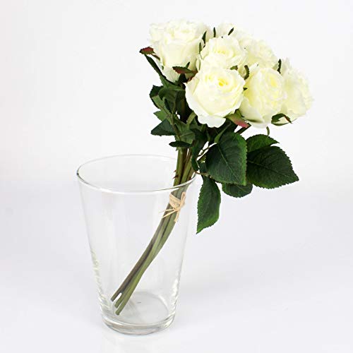 Artplants.de Mazzo di Rose finte Molly, 10 Rose, Bianco, 35cm, Ø 20cm - Bouquet Rose/Decorazione casa