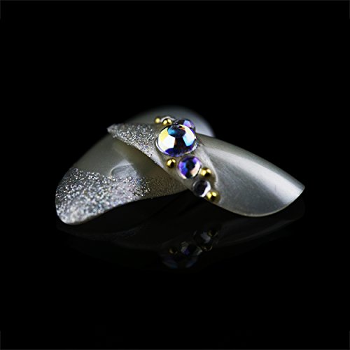 ArtPlus Diamond Fake Nails Kit Stiletto Bridal Silver Glitter with Crystal Full Cover with Glue 24pcs Premium Pack False Nails