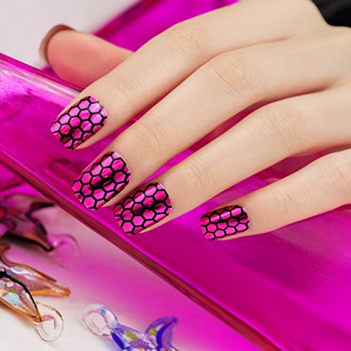 ArtPlus Unghie finte 24pcs Fuschia Nest Metallic False Nails Premium Pack French Manicure Full Cover Medium Length with Glue Fake Nails Art