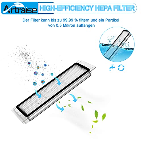 Artraise Accessori Kit Ricambi Per Xiaomi aspirapolvere Roborock S6, S5, E2, E35, MAX E4, Xiaomi Mijia, 1 spazzola principale, 2 filtri HEPA, 2 panni per la pulizia, 1 strumento di pulizia