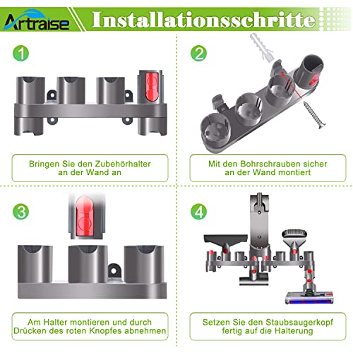 Artraise Supporto per accessori per aspirapolvere Dyson V15 V7 V11 V8 V10 Absolute Animal Trigger Motorhead Outsize Detect Supporto da parete con viti di estensione