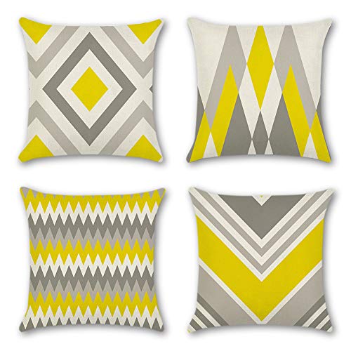 Artscope Federe Cuscini Divano Cotone Biancheria Gettare Set di 4 Decorativo Caso Federa per Cuscino Divano Letto Auto, 45 x 45 cm (Motivo Geometrico Giallo)