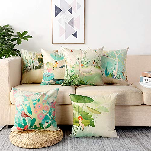Artscope Set di 6 Federe per Cuscini Divano 45 x 45 cm Poliestere Biancheria Gettare Copricuscini Decorativo Caso Federa Cuscino Divano Auto Home Decor (Serie Primaverile)